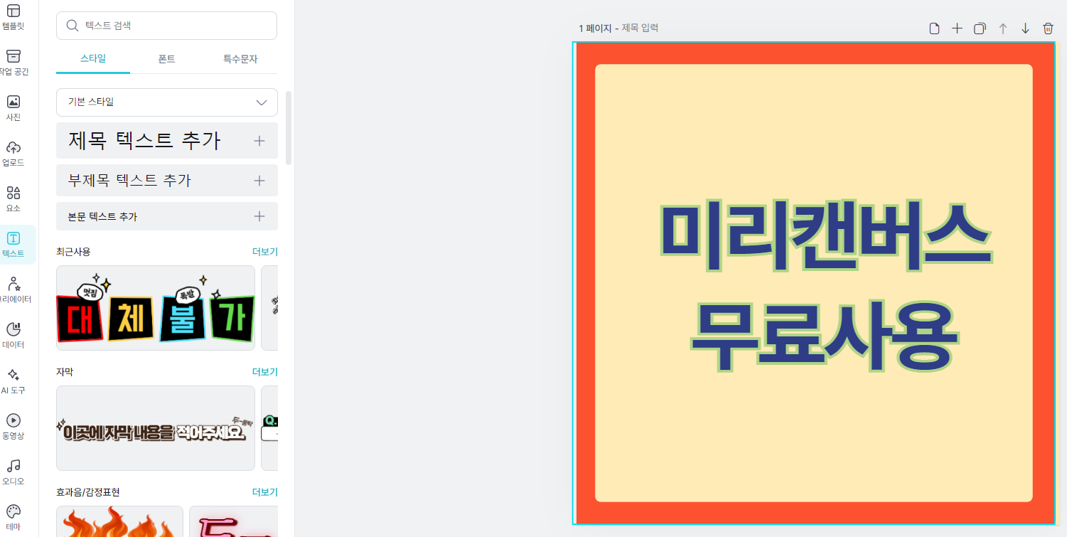 기존에는 내가 찍은 사진으로 무언가 sns에 올릴 게시물을 만들때, 저는 개인적으로 좀 더 특별하게게 하고 싶어서 포토샵과 같은 다른 프로그램을 이용해야 하나 고민했지만, 굳이 그렇게 하지 않아도 미리캔버스에서 충분히 깔끔하고 예쁜 폰트와 색상 조합을 찾을 수 있었습니다.