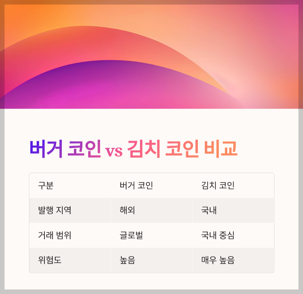 버거 코인과 김치 코인의 차이점과 투자 위험을 완벽 정리! 국내 거래소 상장 후 급락하는 이유와 안전한 투자 방법까지 한눈에 확인하세요.