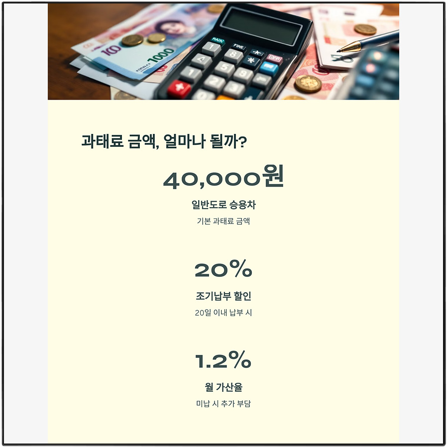과태료는 차량 종류, 장소에 따라 다르지만 보통 승용차는 4만 원부터 시작돼요.