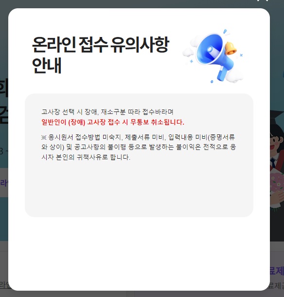 온라인 접수시에는 현장 접수와 달리 수험표를 본인이 직접 발급 받으셔야 합니다.