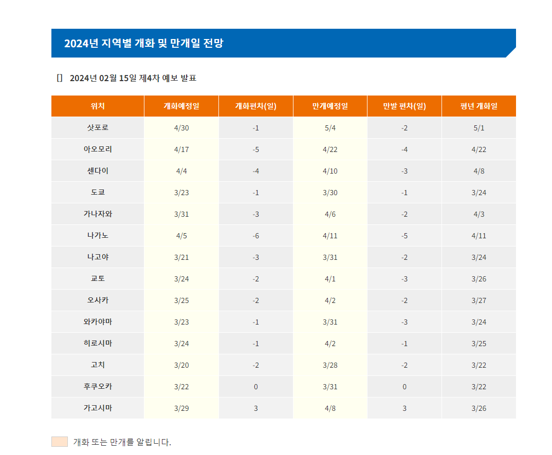 텐키 사이트에서 안내하는 벚꽃 개화시기도 참고하세요.
