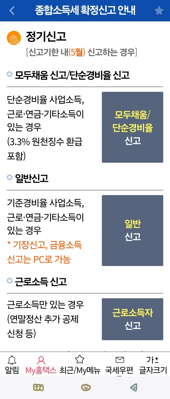 그리고, 전용 어플리케이션 모바일 손택스에서는 5월 한정으로 '소득세 신고하기' 화면을 제공하여 이용자들의 간편한 신고를 돕는다고 합니다.